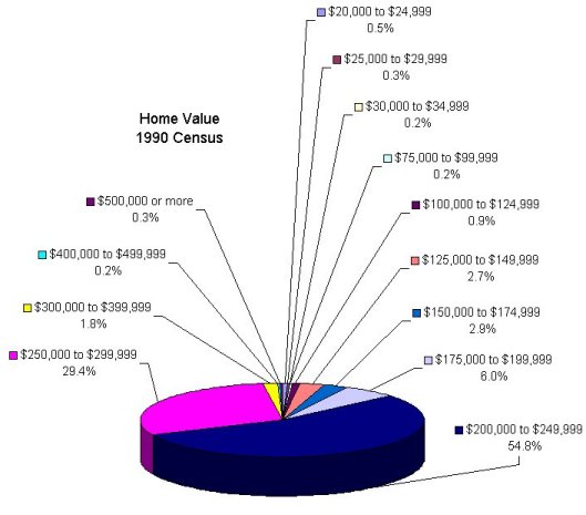 The following charts are from the US Census Bureau data for 1999. Data is available down to the block group level within a census tract (see the Census Tract Map for definitions). Block groups in the Lakewood Village area correspond