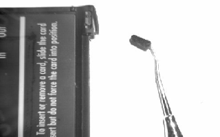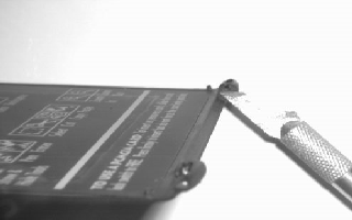 Using the dental pick, remove the soft rubber plugs on each side of the flip-cover near the hinge points (see photo, below), exposing a small cavity (now you know why I recommend a dental pick :-).